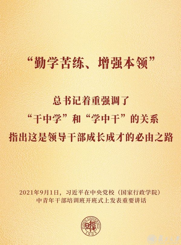 9月3日,复旦大学党委常委会专题学习习近平总书记在中央党校(国家行政学院)秋季学期中青年干部培训班开班式的重要讲话精神。校党委书记焦扬主持会议并讲话,强调要深入学习贯彻总书记重要讲话精神,学思践悟,指导实践,推动工作,切实加强校内年轻干部培养。要把学习总书记重要讲话精神,同学习贯彻“七一”重要讲话精神结合起来,同学习贯彻总书记关于教育的重要论述和关于复旦的系列指示精神结合起来,打好“十四五”高质量发展主动仗,不断提高领导干部建设“第一个复旦”的能力和水平。