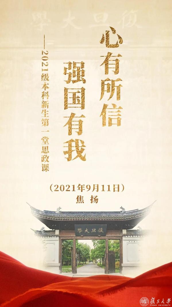 课程伊始,视频《寄语强国一代》里复旦名师和学生代表回答:复旦人有怎样的信仰、信念、信心?第二个百年奋斗目标新征程已经开启,国家、时代需要怎样的复旦青年?对于未来,复旦师生有怎样的期盼?这3个问题,也是复旦师生对新生的期盼。
