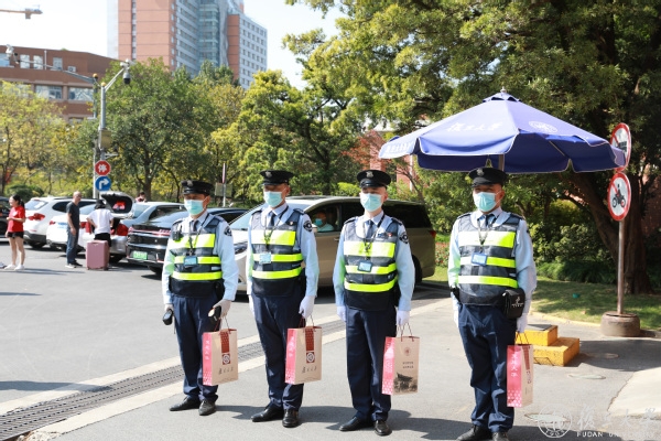 “你们节日坚守岗位,为平安校园做贡献,辛苦了!”