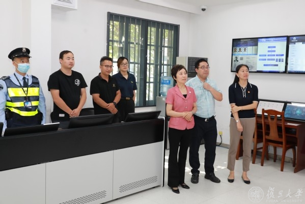 在邯郸校区校门,焦扬一行走访慰问了安保人员,听取保卫处负责人介绍假期期间校门管控情况。