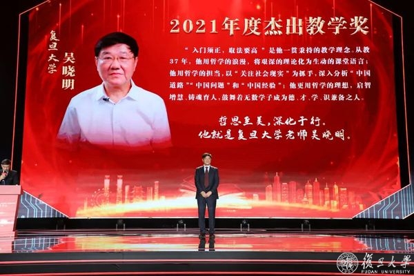 10月15日,第三届教学大师奖、杰出教学奖、创新创业英才奖颁奖典礼在南昌大学举行,复旦大学文科资深特聘教授、哲学学院教授吴晓明荣获“杰出教学奖”。这是继首届闻玉梅院士、第二届李大潜院士之后,复旦大学教学工作者连续第三届获得这一奖项。