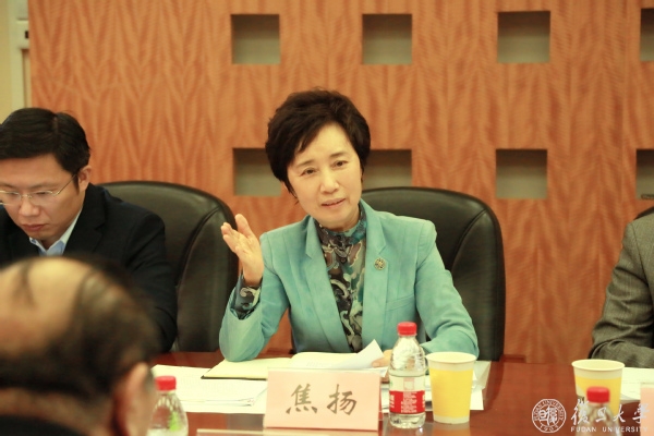 会上,焦扬听取相关院系和部门的教材建设与管理情况汇报,并做总结讲话。陈志敏主持会议。党委政策研究与改革办公室、党委宣传部、文科科研处、教务处、研究生院、复旦出版社负责同志陪同调研。