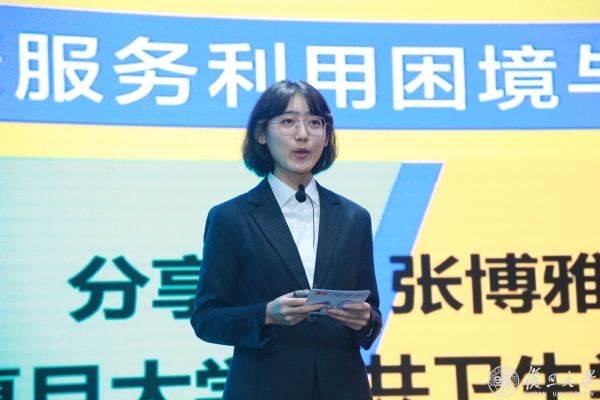 以“携手跨越数字鸿沟,助力构建温情”为主题,公共卫生学院2017级本科生张博雅分享了信息无忧实践队深入了解上海市中老年人数字健康服务的利用困境并探寻解决对策的实践经历。她说,在实践中,项目成员积极响应国家政策的需求,参与城市治理、解决实际问题,努力成为“胸怀国之大者”的复旦青年。