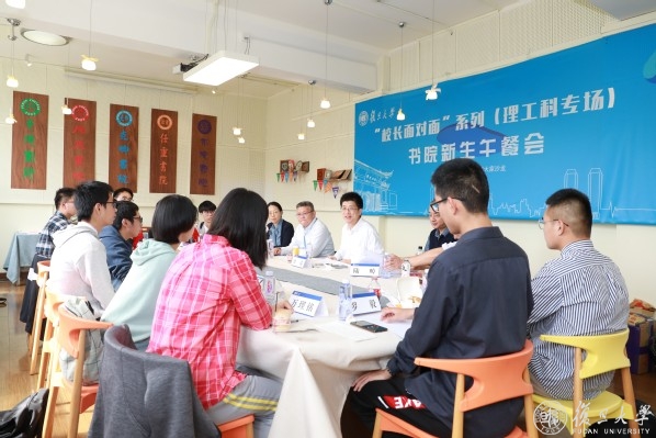 苏亦琪口中的解决实际问题的“校长午餐会”,是“校长面对面系列第二场暨书院新生午餐会”。10月26日中午,午餐会在南区学生活动中心三楼大家沙龙举行,副校长徐雷、腾飞书院院长陆昉以及教务处、学工部等部门负责人和理工科新生代表参加。