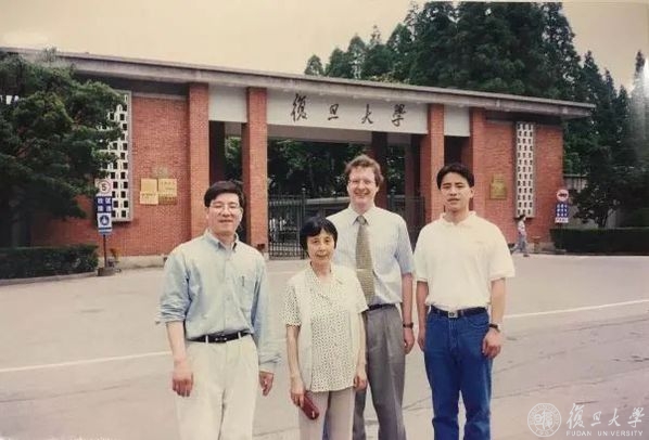 1999年,赵东元和李全芝、Andre Stein、黄立民在复旦大学校门前