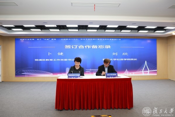 复旦大学社会发展与公共政策学院院长刘欣、何劲松各自代表学院、杨浦区教育工作党委,共同签订合作备忘录。未来双方将以总书记关于“扣好人生第一粒扣子”的指示为总要求,从基础教育立德树人的本源出发,加强德智体美劳五育融合,以一体化专业化课后服务支持体系建设,争取形成具有示范意义、可复制可推广的“复旦-杨浦” 创新经验与模式,提出系统集成的体制机制创新政策建议。