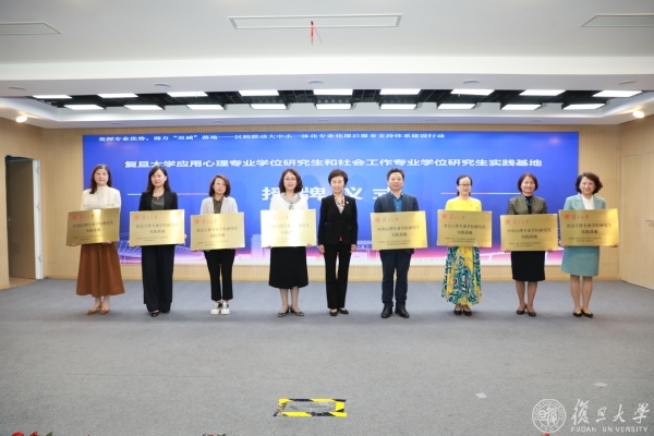 会上,焦扬为复旦大学第二附属学校、上海市杨浦区教育学院附属中学、上海市育鹰学校、上海市杨浦区复旦科技园小学等四所复旦大学应用心理专业学位研究生和社会工作专业学位研究生实践基地授牌。