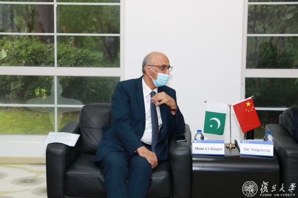巴基斯坦驻沪总领事侯赛因·海德、复旦大学副校长陈志敏等参加会见。会见结束后,巴基斯坦驻华大使一行与复旦学者进行了座谈交流。