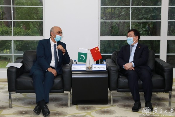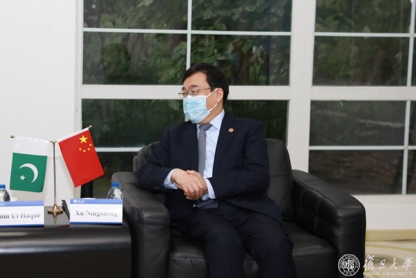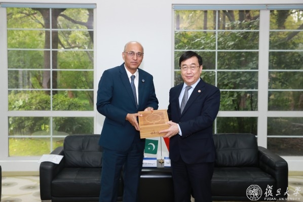 11月5日上午,巴基斯坦驻华大使莫因·哈克一行访问复旦大学。校长许宁生会见了莫因·哈克一行。