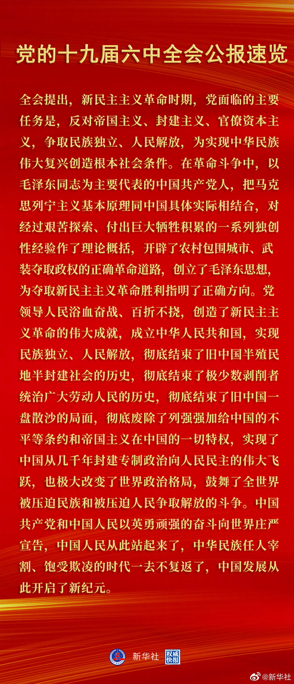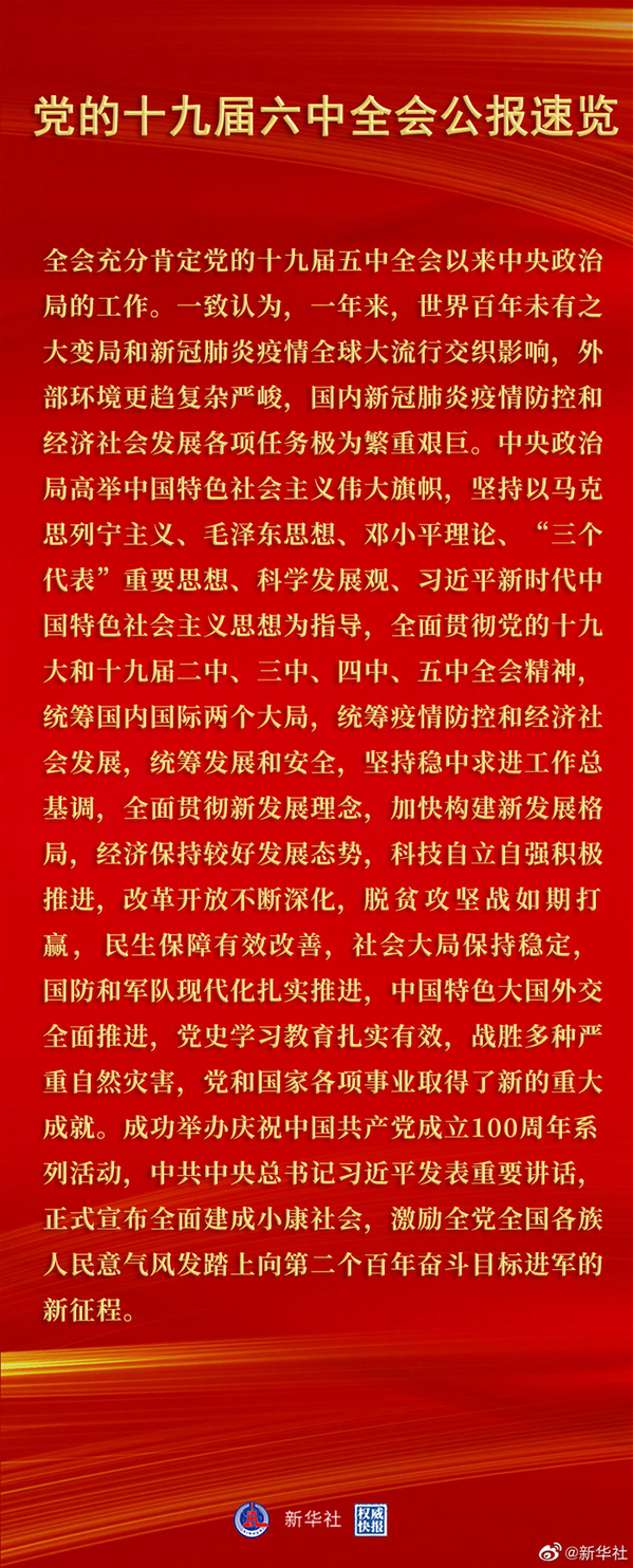 党的十九届六中全会是在重要历史关头召开的一次具有重大历史意义的会议。全会审议通过的《决议》在中华民族伟大复兴的历史进程中具有里程碑意义,为我们走好新时代的长征路提供了思想指引、行动指南和强大动力。