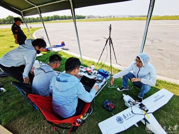 飞行器设计需要多学科融合,技术复杂度非常高,从软件开发、算法设计、系统设计、系统测试、外场试飞,是一个问题攻关、磨练心志的长时间迭代过程。团队五位成员去年已在科研项目中磨练合作,这半年的参赛过程更加深了相互配合的默契,凝聚成一股“向心力”。2020级航空航天系直博刘云霄说:“今天的成果是我们所有人的共同努力的结果,我们一起经历过凌晨的挑灯夜战,一起等待过太阳的冉冉升起,一起经历过‘炸机’过后的挫败和绝望,也一起经历过成功时的喜悦和兴奋。”