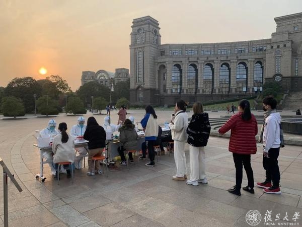 踏实做事,严谨治学——复旦学风一如既往,室外,核酸检测正有序开展,楼内,同学自习身影秩序如常。