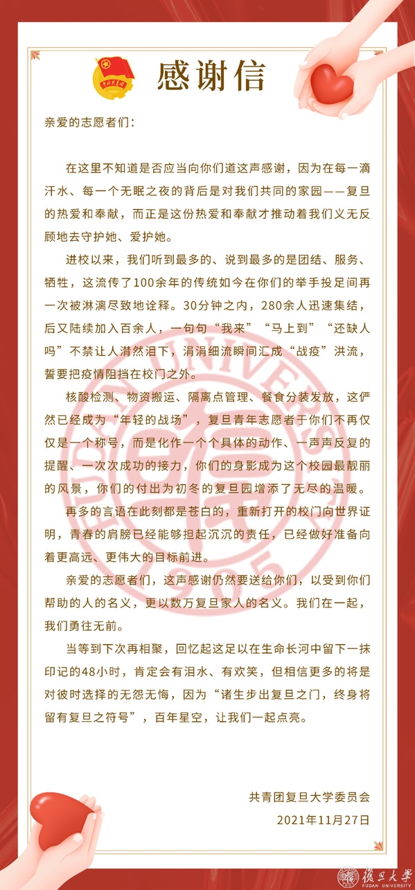 我们想说“谢谢你,复旦!”友爱、温暖的复旦,让每一个停留在此的人们都感到温暖跳动着的心房。