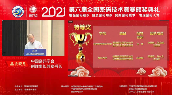 2021年第六届全国密码技术竞赛历时三个月,竞赛分初赛、复赛和决赛三个阶段。共有来自全国60个高校和企业、共计333个团队、1332名选手参加。经过初赛激烈角逐,全国各地共有60所高校/企业,258支队伍,774名选手通过审核进入复赛,最终123支队伍晋级总决赛。123支总决赛队伍分成六组进行评比,每组推荐1支队伍角逐最终的特等奖评选。本届全国密码技术竞赛共设置2个特等奖名额。复旦大学计算机科学技术学院赵运磊教授带领的两支队伍一路披荆斩棘、历经层层选拔,最终获得特等奖1项和二等奖1项,实现了复旦大学在全国密码技术竞赛特等奖的历史突破。