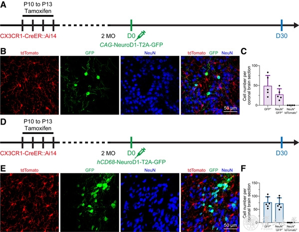 图2 In vivo microglia-specific lineage tracing does not support the microglia-to-neuron conversion.