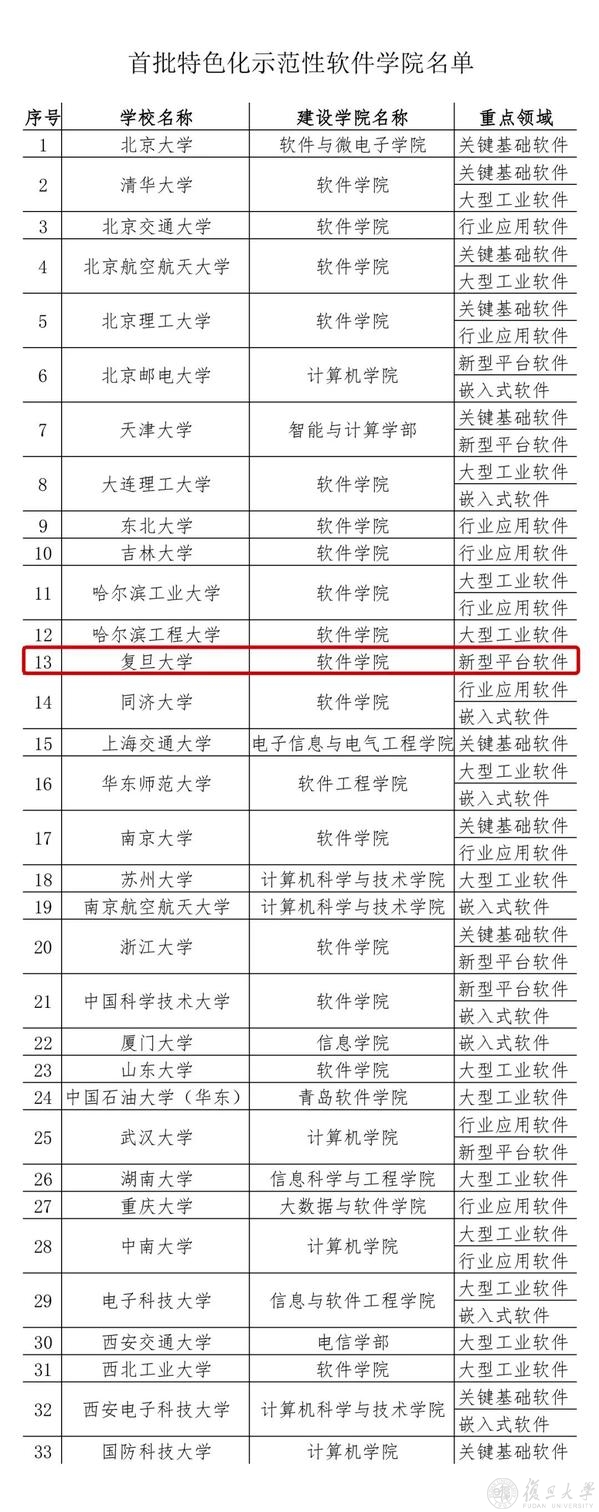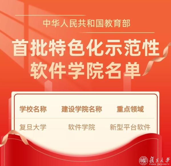 12月6日,教育部官网发布了《关于首批特色化示范性软件学院名单的公示》。复旦大学软件学院聚焦新型平台软件领域,入选教育部首批特色化示范性软件学院名单。