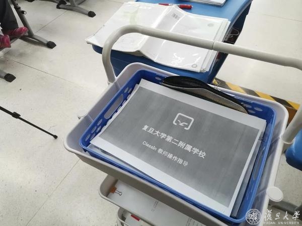 不仅家长学生提前做了预演,第一次接触线上线下教学两头兼顾的课堂,老师们也在今早课程开始之前做足了准备。7:45,二附校年级组长、直播班级的班主任、授课教师参加了线上授课的相关培训,直到课上,还可以看见不少老师厚厚教案的旁边,放着一份《ClassIn 教师操作指南》。