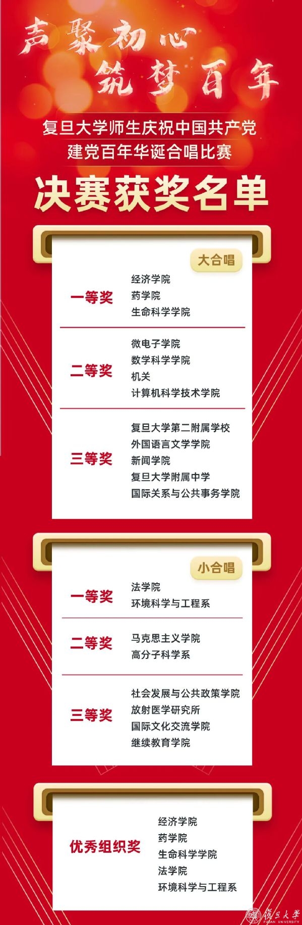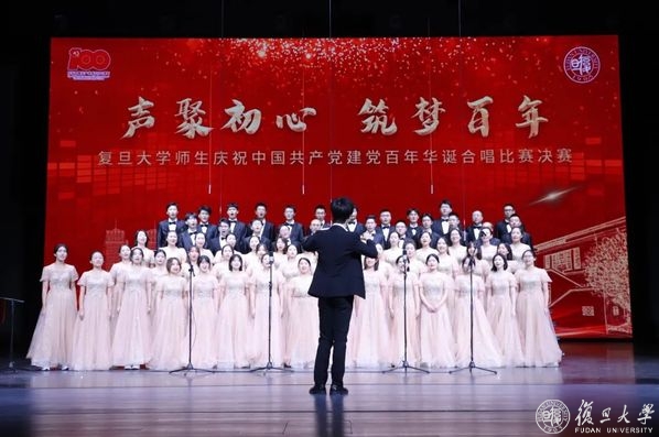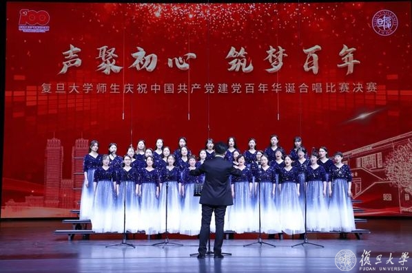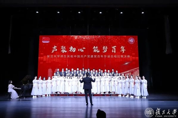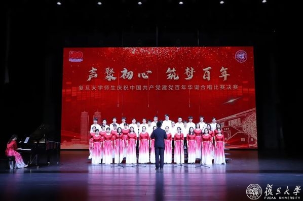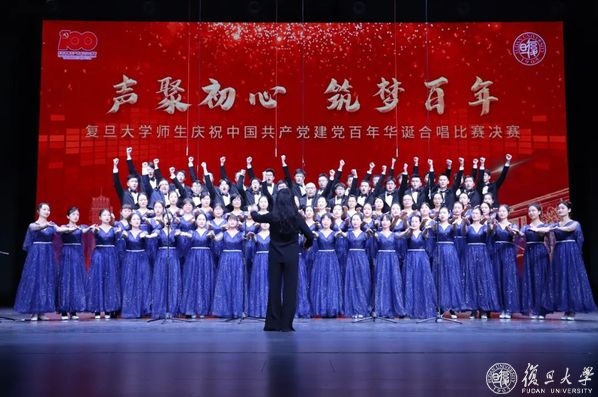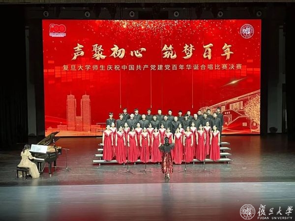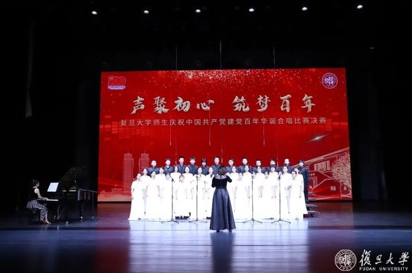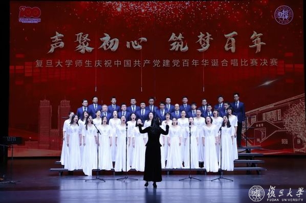 作为庆祝中国共产党成立100周年系列活动的收官之作,由党委宣传部、党委教师工作部、中国教育工会复旦大学委员会、共青团复旦大学委员会共同举办的“声聚初心 筑梦百年”——复旦大学师生庆祝中国共产党建党百年华诞合唱比赛(决赛),2021年12月19日在复旦大学相辉堂北堂圆满落幕。本次合唱比赛作为复旦大学党史学习教育的一个重要组成部分,以师生联袂、同台共唱的形式来展示三全育人的成果,让党史学习教育更鲜活生动,让三全育人更深入人心。