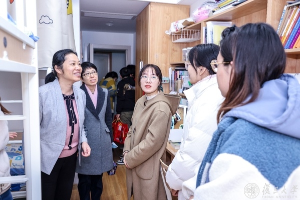 12月30日,校党委常务副书记裘新、校党委副书记尹冬梅一同走访了邯郸校区北苑学生生活园区和本部宿舍楼,看望研究生和本科生学生代表。在走访慰问过程中,裘书记细致地询问了同学们的学习和生活情况,就居住环境、室友关系、学业进展、生涯规划等和同学们进行了亲切交流,还幽默风趣地分享了自己当年在复旦求学时的寝室趣事,勉励大家一定要珍惜在学校读书时的美好时光,踏实努力,勤奋向学,不负韶华。裘书记还走访了解了书院公共空间的建设和使用情况,叮嘱一定要管好用好公共空间,为同学们的综合发展服务和助力。