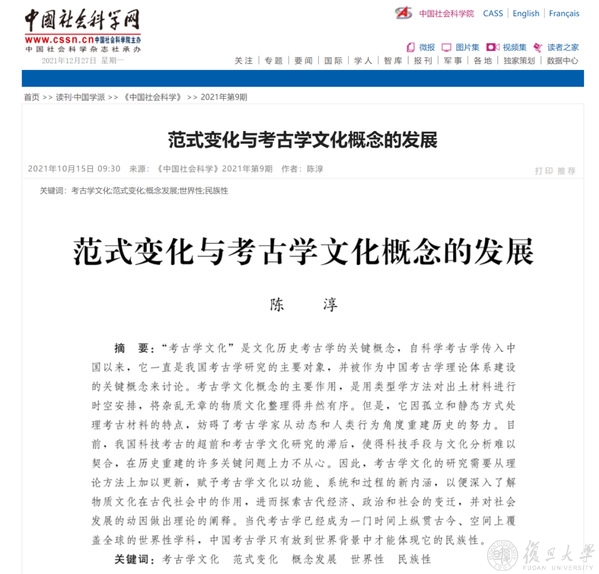 《范式变化与考古学文化概念的发展》刊发于《中国社会科学》2021年第9期,是中国特色哲学社会科学构建“新时代中国考古学特色、风格和气派”的一篇理论性文章。