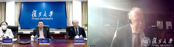 北京时间1月21日下午4点,维也纳当地时间1月21日早上9点,复旦大学校长金力与维也纳大学校长海因茨•恩格尔(Heinz W. Engl)举行视频会谈。复旦大学副校长陈志敏、国际合作与交流处副处长许烨芳、维也纳大学国际处主任芭芭拉•古德(Barbara Good)、复旦大学奥地利中心主任卡洛斯•莱恩奈特(Carlos Reinelt)等参加会议。