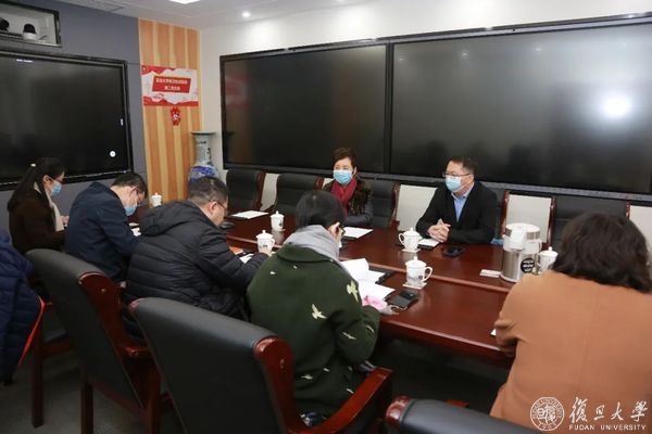 在保卫处会议室,焦扬、汪源源听取了保卫、学工、研工、总务、办公室等部门负责人关于寒假春节期间疫情防控、安全稳定、学生思政和服务保障等工作情况汇报。