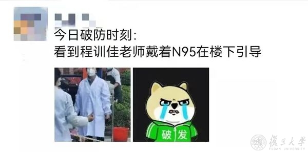 学生拍下程训佳教授做志愿者照片后发朋友圈