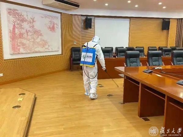 工作人员对物资、场地进行严格消杀