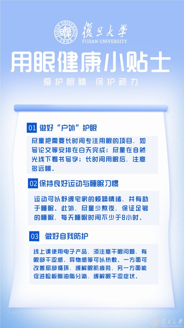 学校进入准封闭管理后,“空中课堂”再次开启,同学们有序进行线上学习。你有没有注意到自己的重要伙伴——眼睛和耳朵有可能超负荷运转了呢?从早八盯手机电脑一直到深夜?眼睛干、涩、疲劳症状出现?耳机戴多了耳朵痛?宅家上课耳机根本不摘?叮!这份护眼、护耳健康小贴士请仔细阅读哦!