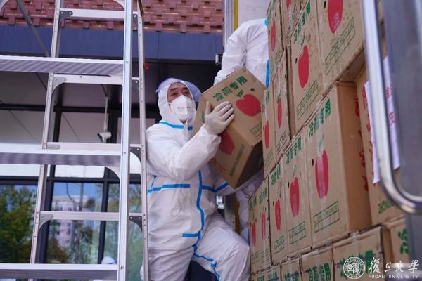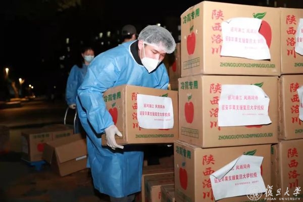 复旦学子也在践行着“团结、服务、牺牲”的复旦精神。2019级材料科学系本科生陈一凡就是参与这次派发的志愿者之一,“我体会到了学校对于我们学生的关心,延安地区对于支援复旦抗疫的热心,以及学校青年志愿者团队对于服务同学的坚定信念。一颗苹果虽小,却饱含了许多人浓浓的心意。在运送苹果的过程中,我对于能将这份心意传达给同学感到非常的荣幸和开心。”