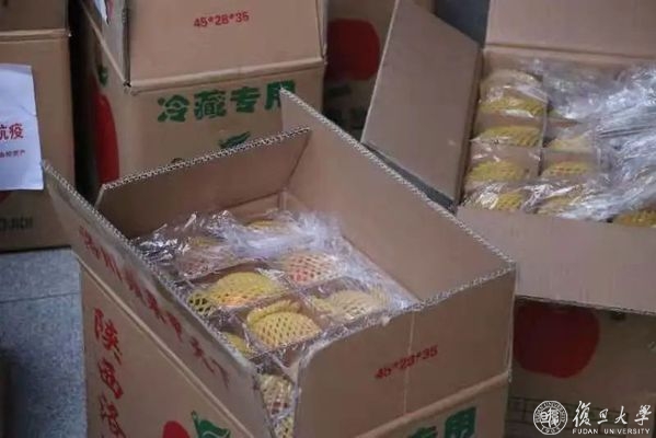 师生有所呼,学校必有应。得知师生需求后,学校迅速响应,校党委书记焦扬等校领导亲自关心,多方联系,最终通过对外联络发展处(下文简称:外联处)与校友会积极筹措,经1978级经济系校友、复旦大学校友会副会长、上海复旦大学教育发展基金会理事赵定理联系后,2004级经济学院博士校友、西安校友会副会长、陕西延长石油(集团)有限责任公司首席经济学家蒲小川倡议向母校捐赠3万斤“延安苹果”。