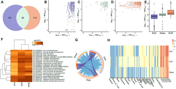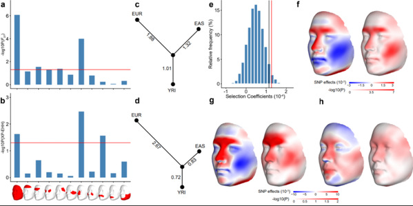 人类头面部形态具有很高的遗传度,人群间的面部差异究竟受到何种遗传机制调控?利用多变量典型相关分析,研究者定位了244个影响东亚群体头面部形态的遗传变异,证实面部特征作为典型的复杂性状由多基因共同影响。通过与欧洲团队合作,进一步发现亚欧差异信号可能是功能同质,因频率变化而造成的。