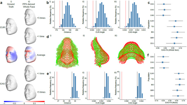 研究发现欧亚不同人群的真实面部形态差异与利用PSA模拟的由遗传因素影响的欧亚特征一致性很高,进而定位了13个影响东亚特有面部特征相关的遗传因素。同时,相关位点无论从效应还是产生时间上而言,都能较好地符合东亚起源/衍生的猜测。