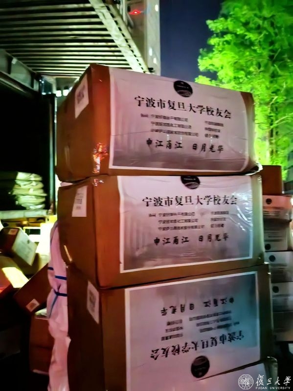 清明假期间,校友们多方筹措,设法解决物资进沪的问题,但效果并不理想。了解情况后,1978级经济系校友、复旦大学校友会副会长、上海复旦大学教育发展基金会理事赵定理与复旦大学办公室、外联处积极帮助这批捐赠物资办理入沪通行证,校友会也寻到愿意跑一趟的运输单位,宁波本地最大运输企业中通物流集团。