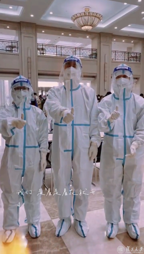 余燕菲医生3月16号入校参加邯郸校区防疫值班。3月28日调入江湾校区,替代因病离校就医的索玉洁医生。陌生的工作环境,陌生的人群,不变的是为师生服务的心。除了常规的门诊、防疫门诊以外,她还承担江湾校区的常规核采工作,也包括夜间的紧急核采任务。凌晨三点的月光,见到过她辛劳的背影。