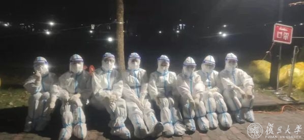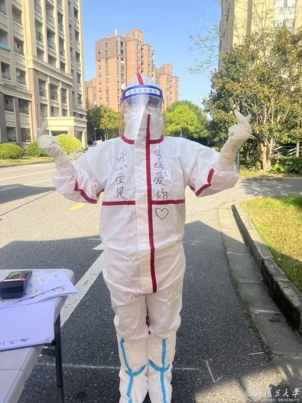 早上八点多穿上防护服,跳上车前往核采点,晚上八九点回来,几乎成为核采队伍的日常。湿透的洗手衣、闷热透不过气的瞬间、压迫的鼻梁、脸上的勒痕、手套里被汗水泡出皱褶的手、无法被转移的疲劳和饥饿……这一切,都被清点采样数量时一句“今日任务完成”所带来的轻松和喜悦替代。累吗?他们只表示“我只是在做应该做的事情,能一起守护复旦校园,值得!”