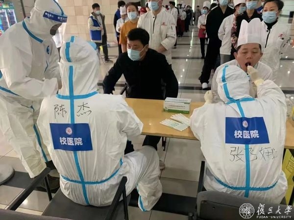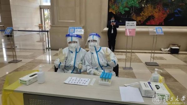 在校的医务人员,在接受现场专业培训和指导后开始了当天的核采工作;后陆续返校的医务人员,事先观看了培训视频,入校后又经过实战演练等专业培训,随即投入到了紧张的核采工作中。此后,张江校区和江湾校区核采工作均由校医院医护人员独立实施完成。