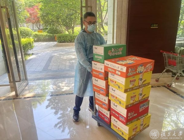 戴手套、灌装消毒剂、喷洒消杀、核对物品、分拣所属单元楼、分批搬送到户。这是4月1日以来,除了楼宇封控时期外,生命科学学院生理与微生物党支部书记余巍的志愿者工作日常。疫情发生以后,封闭居家之初,余巍就通过“先锋上海”到所属社区报到,积极加入所在小区的志愿者队伍。