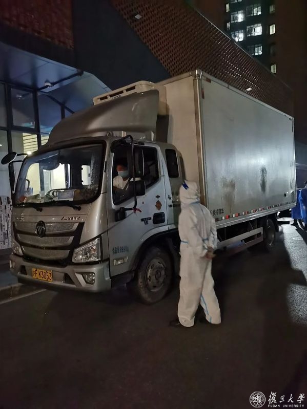 由于新疆当地的防疫政策要求,从沪返疆人员必须进行14天的隔离,因此不少司机都不愿意跑上海,但让张芳意外的是,得知要去复旦为师生们送援助物资,五六小时内就有十几位司机向他们报名。