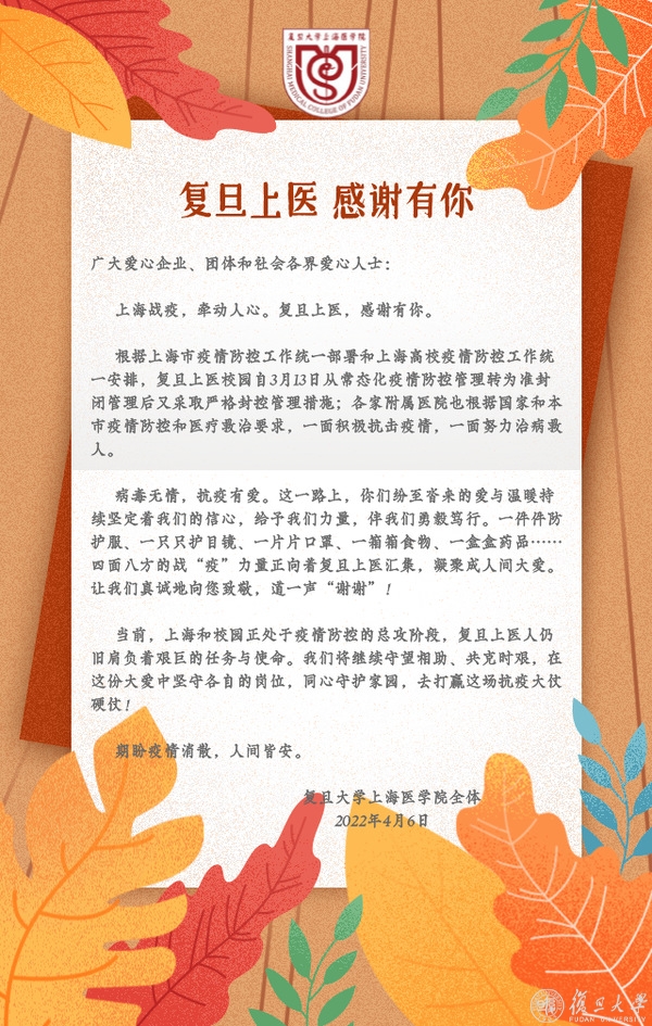 守望相助同抗疫,物资捐赠暖人心。连日来,一批批爱心物资络绎不绝抵达复旦上医,校友、爱心企业、团体和社会各界爱心人士以实际行动与师生共克时艰,为疫情防控汇聚爱心和力量。