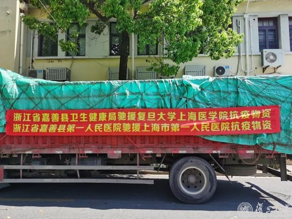 日前,浙江省嘉善县卫生健康局向复旦上医捐赠了一批防疫物资,包括防护衣/隔离衣 5060套、面屏3000只、N95口罩 2000只、防护帽 3000只、免洗洗手液216瓶、医用口罩3000只、无菌保护套2000套等。