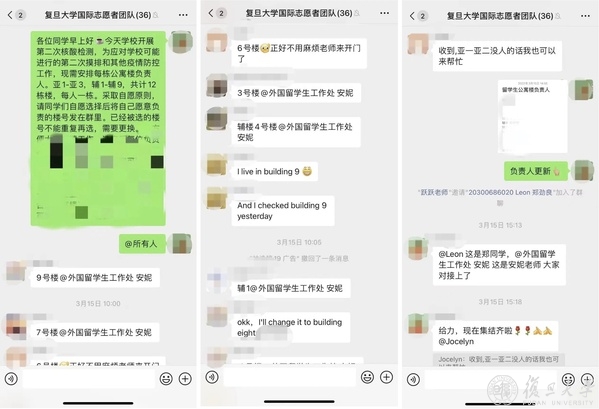 3月15日上午,一则“楼长召集令”在服务队微信群中发布,很快得到队员们的积极响应。三小时后,所有留学生宿舍楼认领完毕,楼长们即刻上岗。
