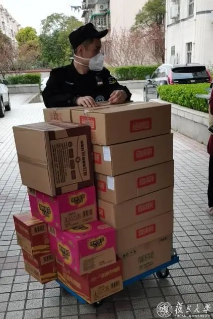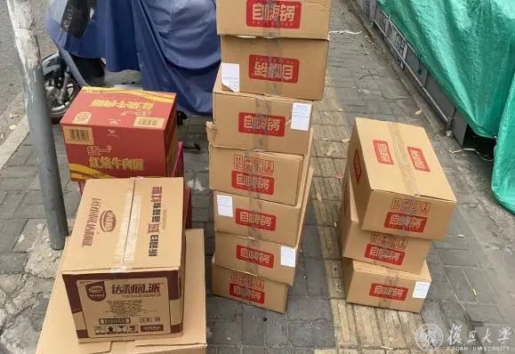 急学生所急,韩伟力迅速联系曾经挂职过的高境镇。高境镇党委和政府领导们在了解情况后,迅速落实相关人员,调拨备用物资紧急支援复旦学子。当天晚饭前,这次快速的爱心接力就将120份自热饭、55份方便面和牛奶等物资赠送到同学手里,既解决了同学们的燃眉之急,又续写了宝山-复旦的区校合作情。