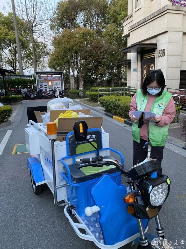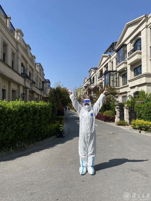 3月28日,浦西区域封控在即,外国语言文学学院的袁萍老师看到自己居住的杨浦区五角场街道在公众号上发布了防疫志愿者招募公告,第一时间报名参与。袁萍了解到报名人数不少,而她对能被选入五角场街道疫情防控志愿服务应急队,参与4月1日至5日封控期间的防疫志愿服务,感到十分荣幸。