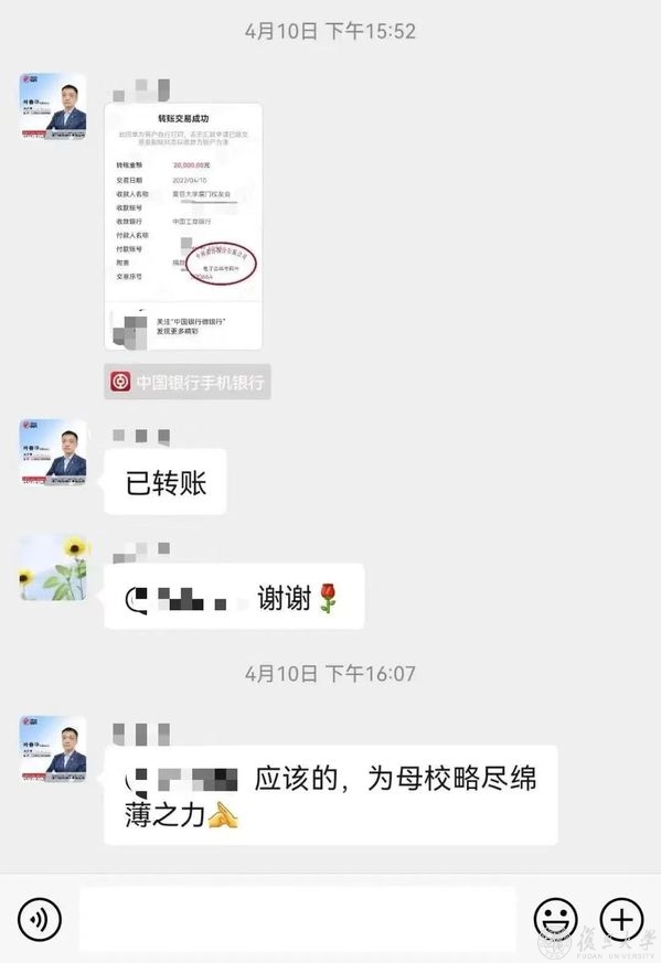 在得知复旦大学教育发展基金会设立“疫情防控保障基会”后,复旦校董会高纪凡、吴春艳校友伉俪积极响应,以天合光能名义捐赠50万元。吴春艳表示,这次捐助是想表达为复旦加油的心意,希望在校师生多保重。