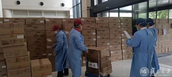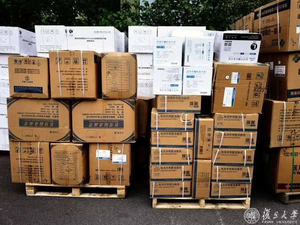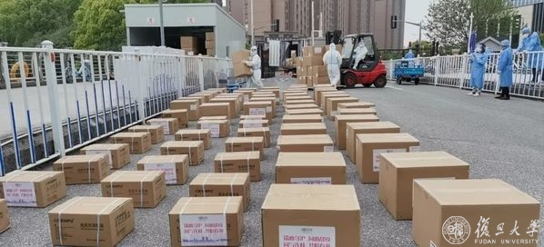富国基金管理有限公司向复旦大学捐赠的包含医用防护服、医用手套、隔离衣等600件防疫物资也与4月16日抵达校园。