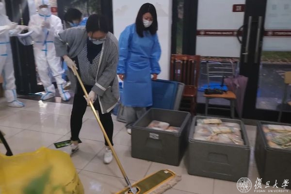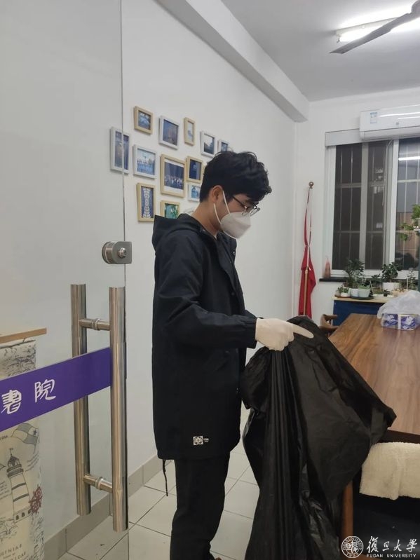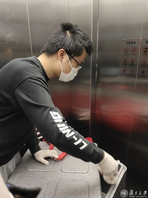 清晨7点左右,邯郸校区东区18号宿舍楼走廊里,已出现楼层长和楼层志愿者们辛勤工作的身影。