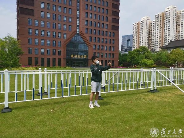 来自澳门的2020级临床医学五年制的李同学为自己和图书馆拍了一张照,打算发给家人。“我平时也一直会和他们报平安,告诉他们我在学校一切都好,学校很照顾我们,基本生活需求都能保障,不用担心。”他说,“作为医学生,平时就是寝室、图书馆、教室几点一线,一直在学习,现在封闭在寝室,也是以学习为主。”小李说,“虽然在宿舍学习的效率没有原来高,但自己也在调整,毕竟疫情之下,大家都是很辛苦的,所以总体还好。”