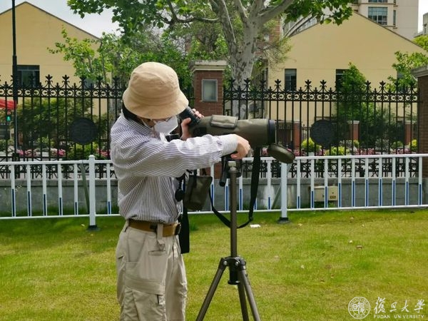 下楼的人群中,一位带着望远镜的同学特别引入注目。他是2020级公共卫生学院预防医学专业的学生李骥玄,也是复旦大学观鸟协会的会长。“春季正是猛禽北迁的时节,所以今天一有机会下楼,就想找一个好点的视野,做点记录和观察。”他说,大一来到复旦后,喜欢上了观鸟。“想到这些鸟儿从马来群岛飞来,经历那么长的距离,会感受到生命的坚韧,身处当下,也会有一种代入感,让自己更加坚强。”