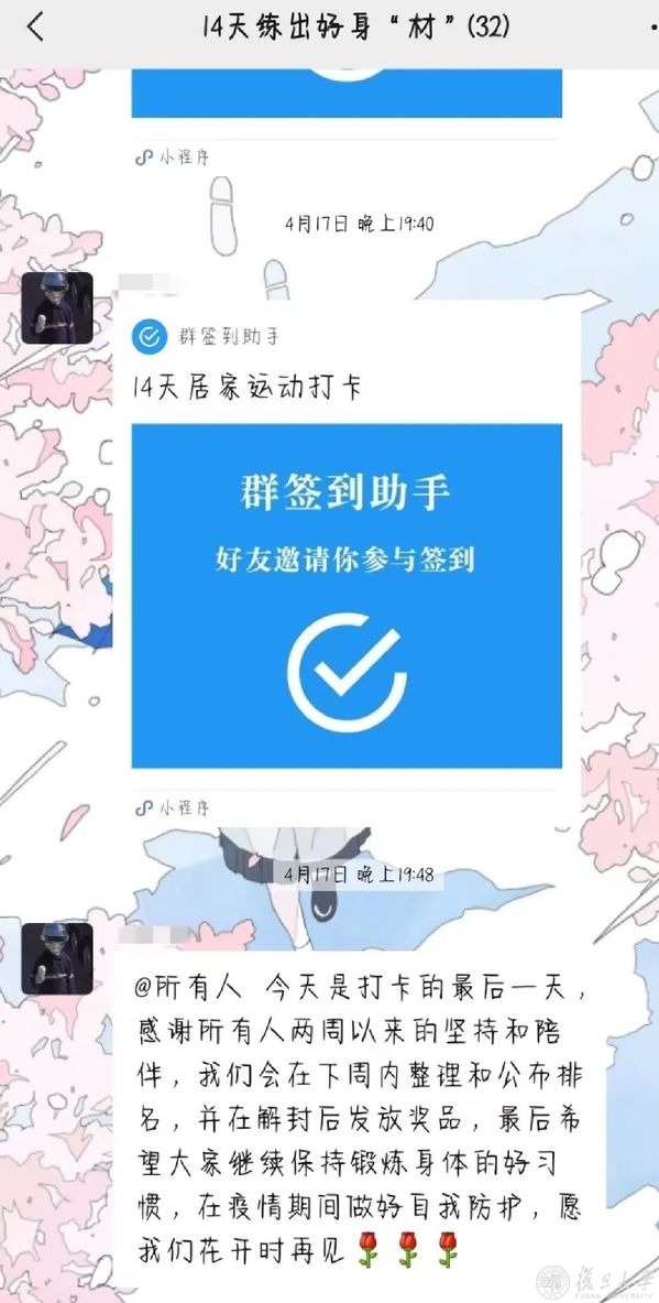 D:学校有很多线上学习“打卡”活动,我经常参加来督促自己学习。我有一个四人组的小群,大家每天晚上都会发自己的“打卡”记录,互相激励彼此。我还会列每周计划表,灵活安排录屏课的学习时间。有时遇到紧急事项也会偶尔挪用一下时间,不过还是尽量当日事当日毕,不然会拖着越来越久。